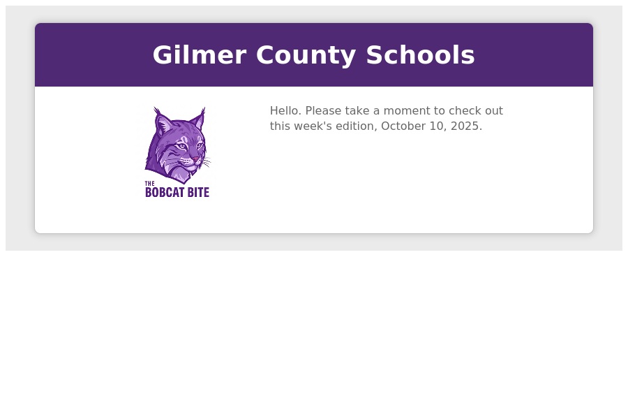 Gilmer County Schools Hello. Please take a moment to check out this week's edition, October 10, 2025.